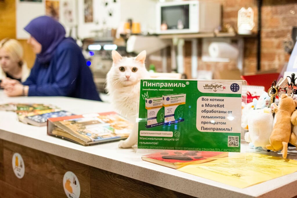 Котокафе — это особая концепция заведения, где знакомый формат кофейни сочетается с возможностью тесного общения с животными. Поскольку тактильный контакт с кошками является неотъемлемой частью посещения заведения, здоровье питомцев является приоритетом. Московское кафе «MoreКот» и челябинское «Мягкие лапки» уже получили годовой запас «Пинпрамиля», что позволяет им гарантировать гостям безопасность своих животных.