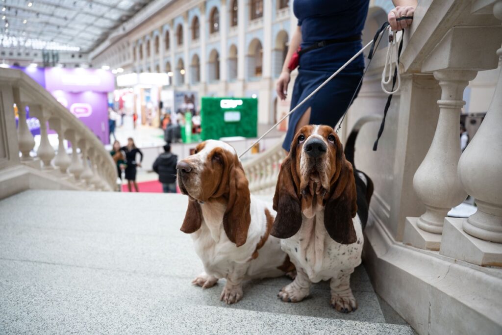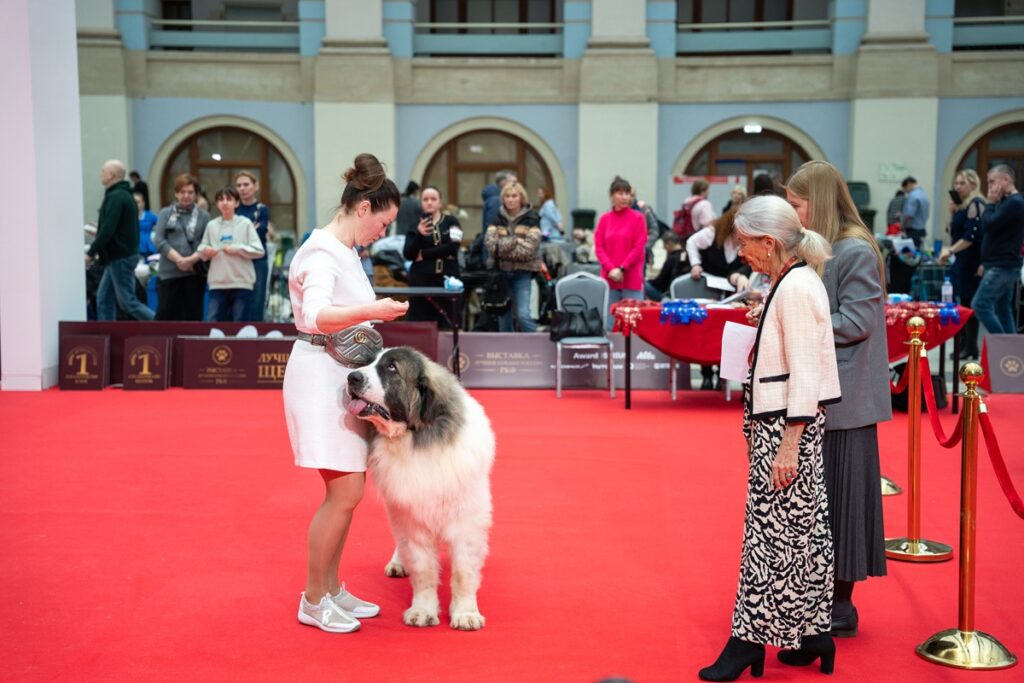 Сегодня на рингах проходят состязания среди собак второй, пятой, шестой и седьмой групп по классификации ЛСР. На площадках можно увидеть представителей самых разных пород — от гигантов до малышей.