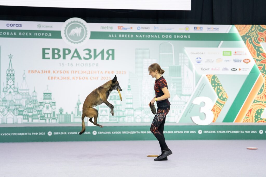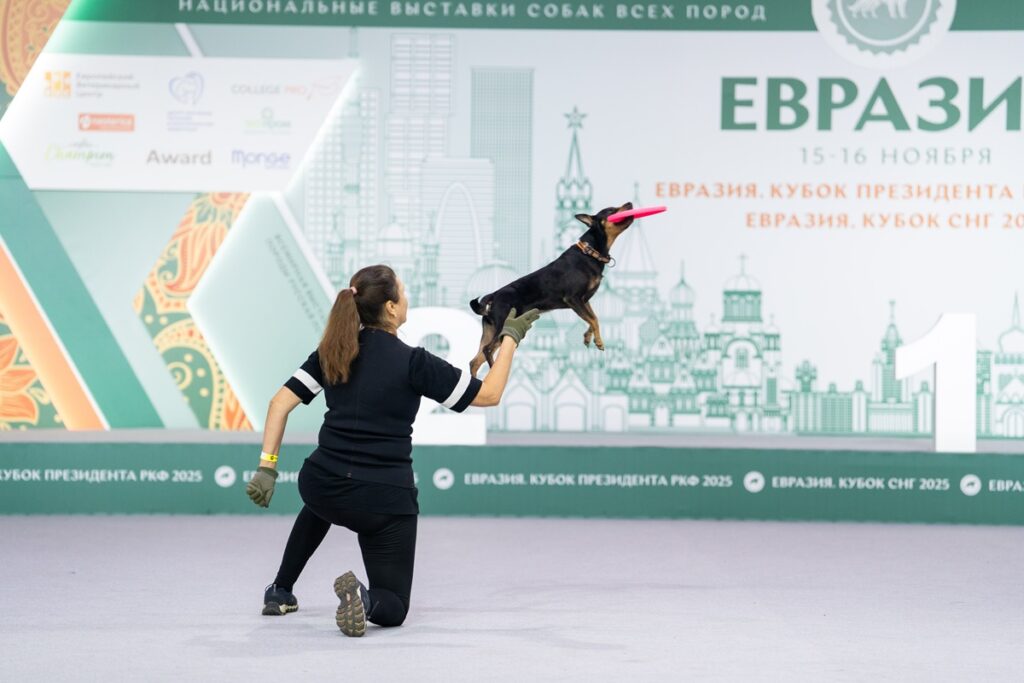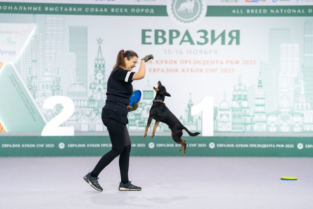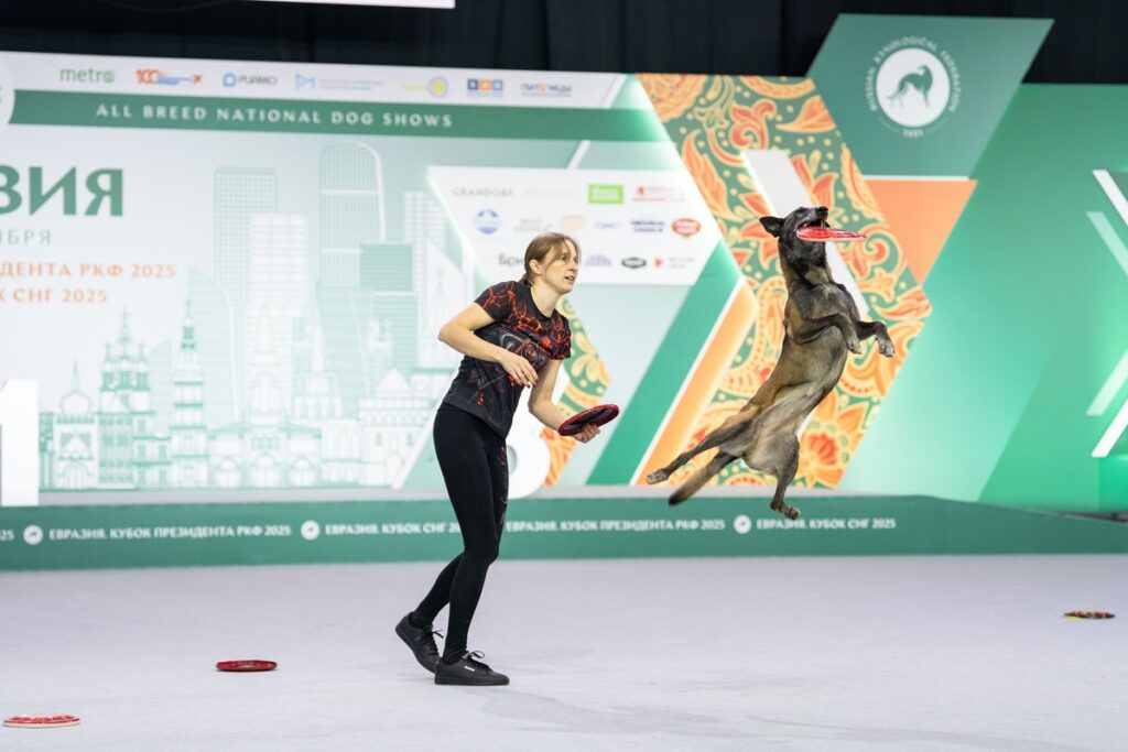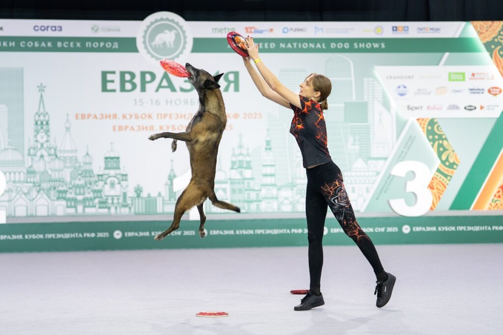Фрисби-фристайл. Это композиция из бросков и трюков под музыку. Судьи оценивают сложность, разнообразие, взаимодействие пары, азарт и атлетизм собаки. Все элементы должны быть безопасны.