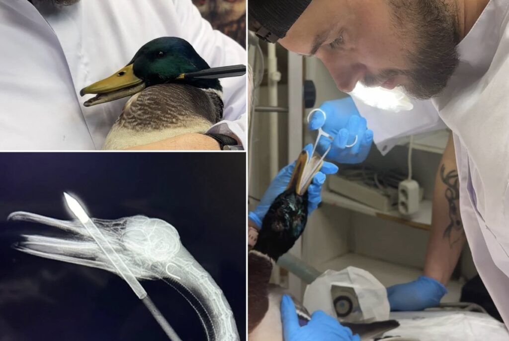 Ближайшая лечебница нашлась в Балашихе. Перед операцией селезню сделали рентген и, помимо стрелы, обнаружили на снимке рыболовный крючок, застрявший в шейной части пищевода.