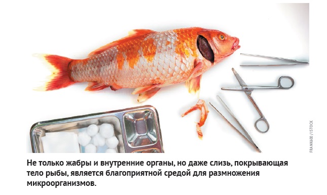 Даже слизь, которая покрывает тело рыбы, содержит множество микроорганизмов и является благоприятной средой для их размножения.