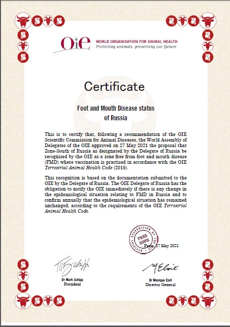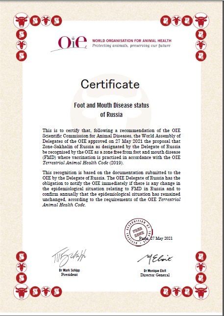 Россия получила статус благополучия по ящуру с вакцинацией для двух новых зон – «Юг», куда входят южные и северокавказские регионы страны. Вторая зона, которая признана МЭБ благополучной, – «Сахалин» (остров Сахалин и Курильские острова).