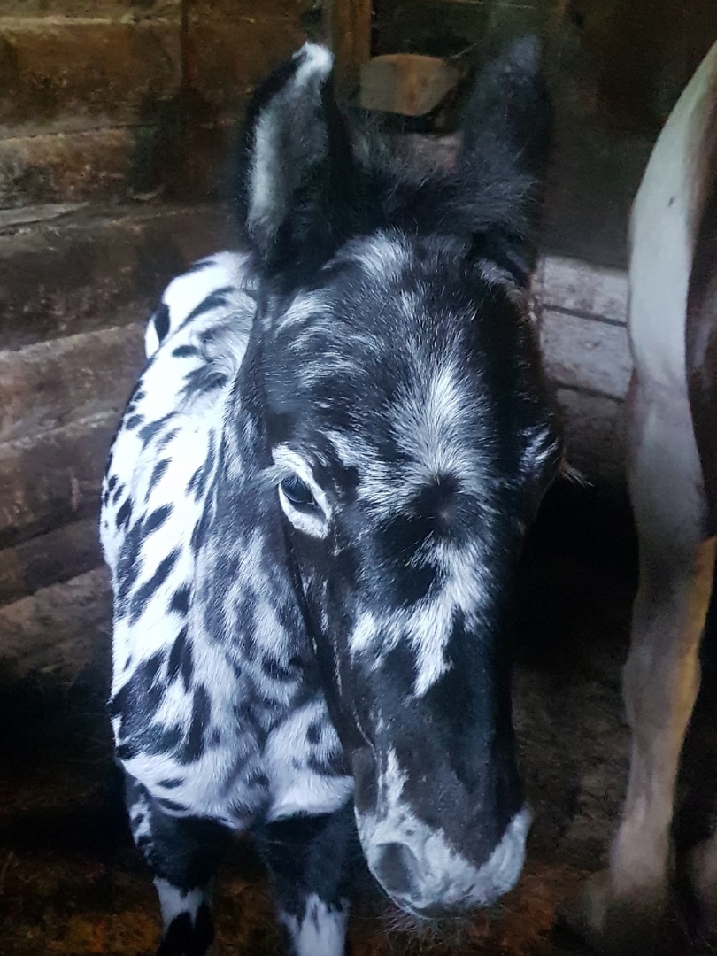 Черно-белый жеребенок, которого назвали Ижмарин, родился у гнедо-пегой кобылы Ижмы, окрас тела которой коричневый с белым. Оказывается, свою роль сыграли гены дедушки необычного жеребенка. «Как же настойчиво дедушка Арбат передает свои умопомрачительные пятна через несколько поколений», – рассказала директор учреждения Наталья Денисова на официальной странице конного центра во «ВКонтакте».
